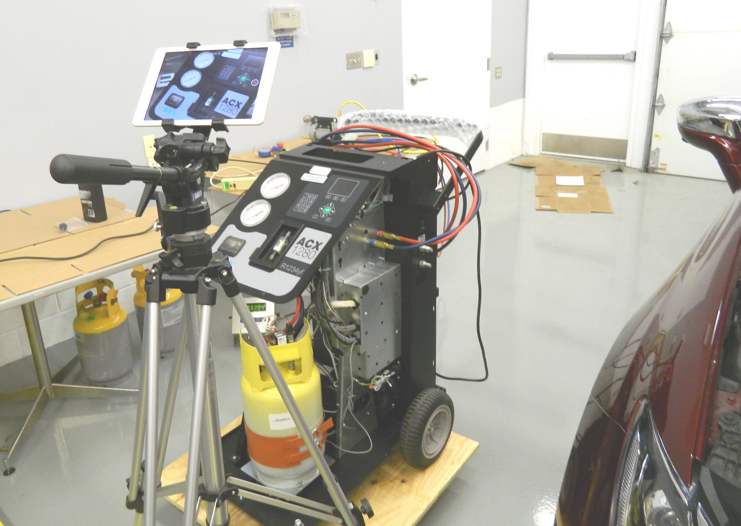 When J2843 was developed for R-1234yf, the same vehicle as in J2788 was used for certification, a 2005-09 Chevrolet Suburban with a rear A/C system, which had been tested some 15 years ago to assure that it was a challenge for R-134a equipment to meet. A primary requirement: recovery of a minimum of 95% of the system’s refrigerant charge –3.0 lb (1363 g), within a maximum of 30 minutes. This percentage would leave no more than 5% that would be vented to the atmosphere, a number recommended in U.S. EPA documents.