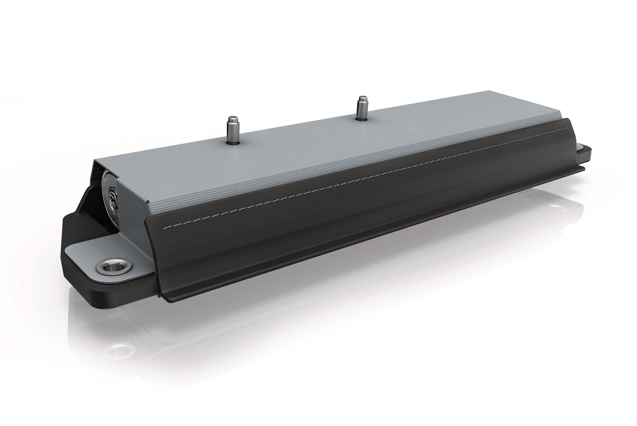 Module—ZF spent about three years in core development and an additional two years in application development to launch its new fabric-housing knee airbag module on the Skoda Scala in May 2019. Initially, replacing metal with fabric for the application seemed “so impossible that it starts to get interesting,” said Werner Freisler, who led the core engineering efforts within ZF Passive Safety Systems Engineering. A specialized thermo-fixation process, which applies heat to the module after the folding process and requires the use of new automated processes and machinery, helped to overcome some challenges. The result is a product that is not only 30% lighter than previous designs but also 20% more compact.