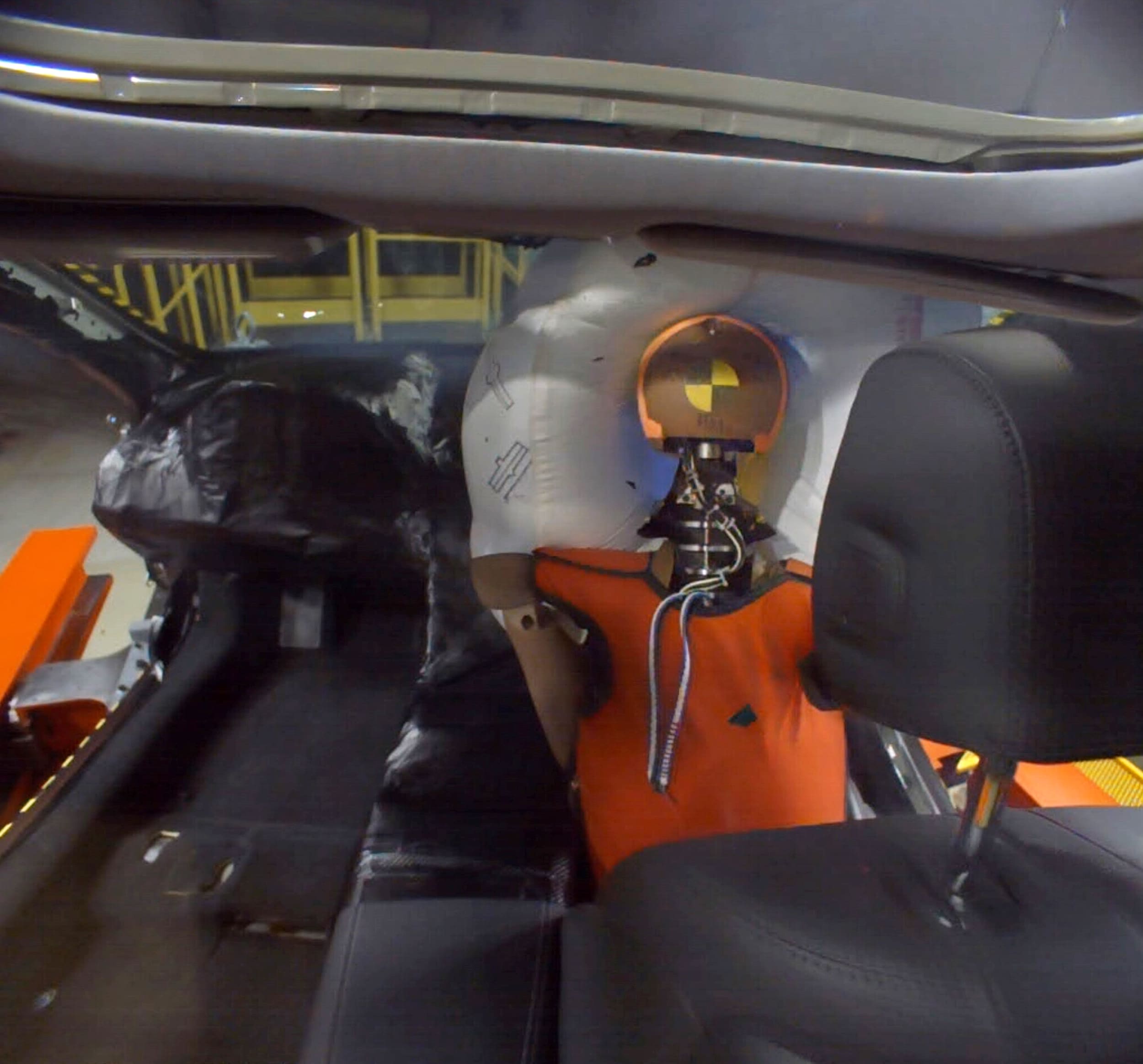 The new airbag is comprised of three inflatable chambers, with the two outside portions angling across the dashboard. Connecting the outer chambers is a netlike “sail” panel that first catches the head and slows its forward momentum towards the inflated center chamber, while at the same time pulling in the bag’s outer chambers to envelop the head to reduce twisting and prevent the head from sliding off the airbag, which can happen with conventional designs.