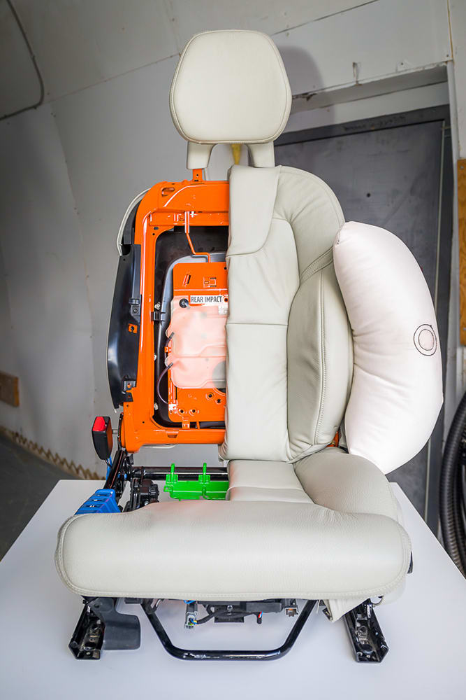 LJ: Just reclining the seat already poses a huge challenge to the lap belt, because the lap belt today grabs the edgy points of your hip bone. With a conventional seatbelt design, you will slide under the belt. So we have to adjust that conventional design of the seat belt to something that will grasp that hip bone or stop you another way. Another thing is we have dramatically reduced injuries compared to years ago. That means crashes are more unique.