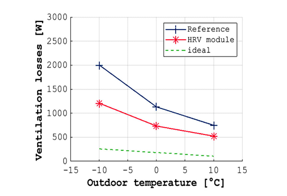 As a heat recovery unit (HRU), the AIT team used a Recair counterflow heat exchanger, 300 mm (11.8 in) in height, with an “ideal” rating of 95% thermal efficiency, which it built into the HRV (heat recovery ventilation) module. Recair is a Dutch supplier specializing in this area. Ventilation modules have long been used to deliver preheated fresh air for tightly-insulated commercial and residential buildings, as part of energy-efficiency upgrades.