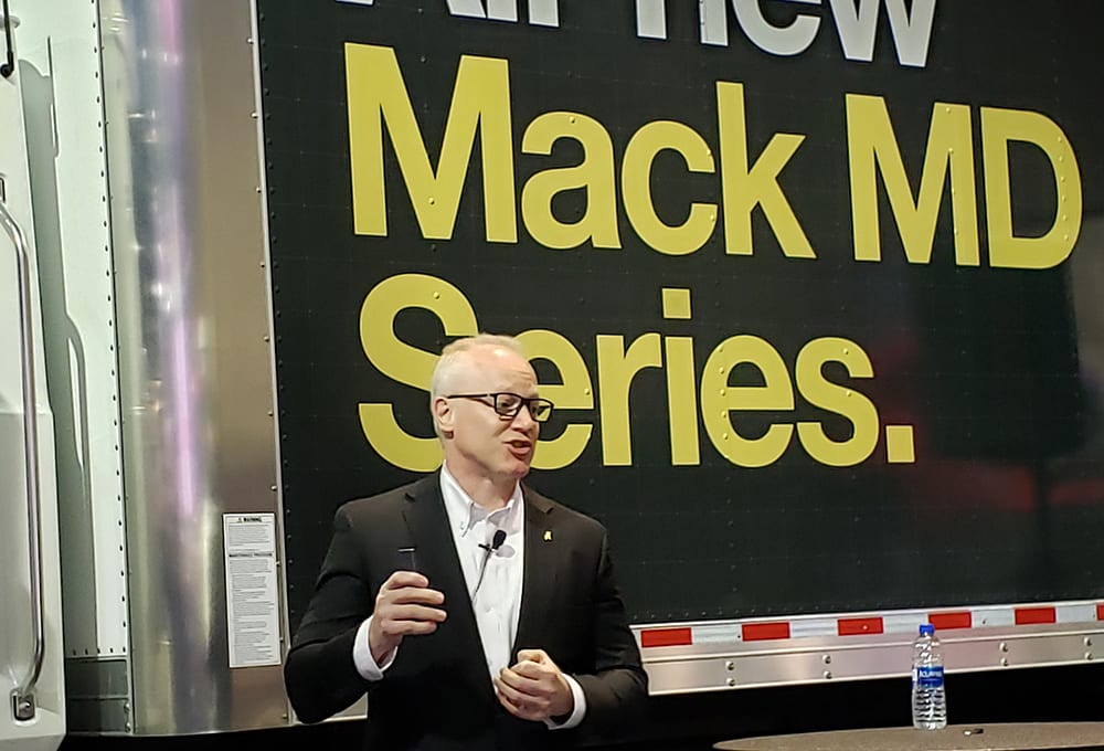 Mack addressed medium-duty applications with its MD6 and MD7, which both use Cummins 6.7-liter diesel engines linked to Allison transmissions. The two vehicles are targeted at applications like dry van/refrigerated, tank trucks, dump, stake and flatbeds. They’re designed for tight working situations. “Maneuverability is key for the design,” said Roy Horton, Mack’s director of product strategy.