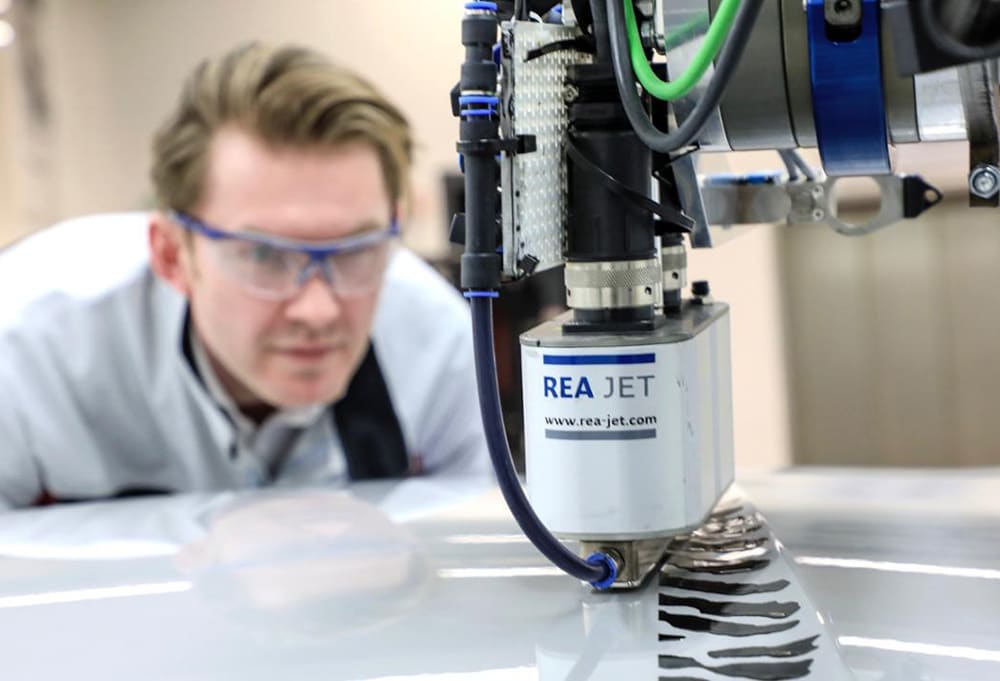 Porsche explained that the technology is similar to an inkjet printer. A print head applies paint to three-dimensional components automatically and without overspray. “The ability to control the nozzles individually permits targeted application of every paint droplet,” said Christian Will, vice president – production development at Porsche AG. “The complexity is due to the necessity of harmonizing three technologies: robot technology (control, sensors, programming), application technology (print head, graphic handling) and paint technology (application process, paint).”