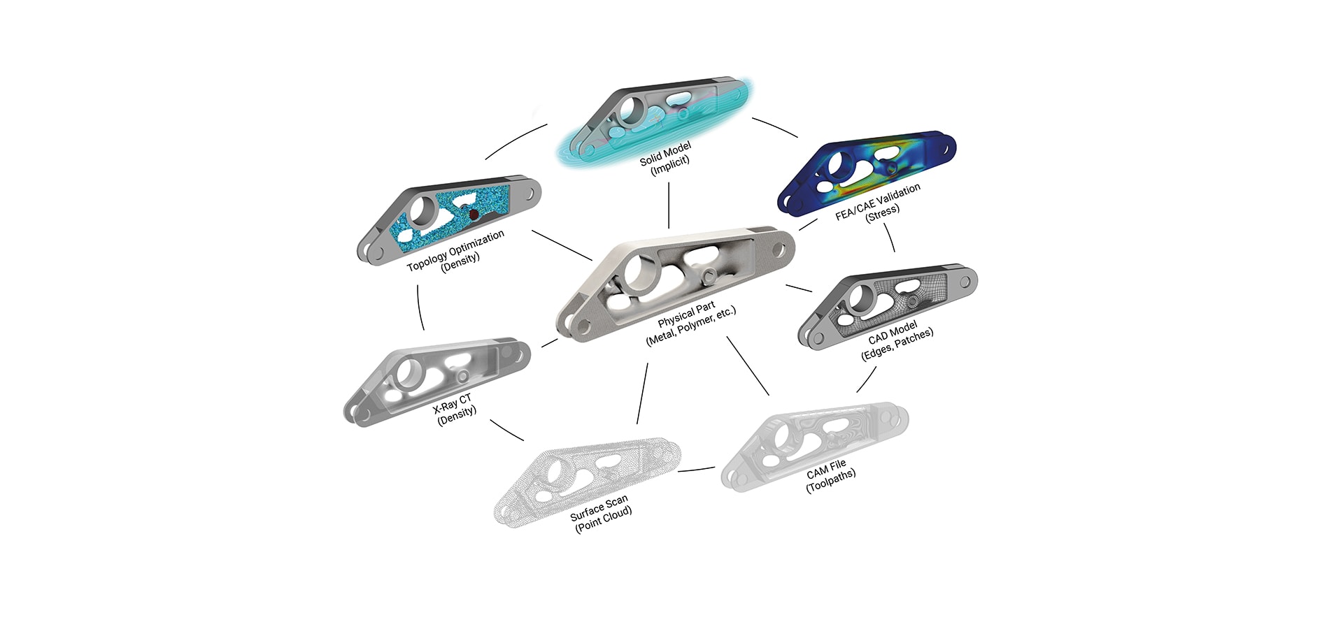 We’re learning to bond and hybridize very dissimilar materials to reach new levels of automotive performance. In the quest for lightweighting, the same will hold true of the design tools themselves. Instead of mixed-materials, we have mixed data-sources: surfaces from CAD, meshes from FEA, density fields or stress results from CAE, and real-world measurements like scan data or digitally-imaged strains. Just like physical materials, these need to be synthesized and fused together digitally to reach new levels of performance.