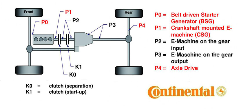 On the path to EVs, the panel agreed, adding electric motors somewhere in the driveline in one of the so-called “P” positions (see graphic) can deliver a number of marked benefits, including the potential to use fewer gears in the transmission and adopt simpler yet potentially more-sophisticated all-wheel-drive (AWD) and 4-wheel-drive (4WD) systems. The latter is particularly attractive as the U.S. and other world markets gravitate to pickup trucks and SUVs purchased, at least in part, for their AWD capability.