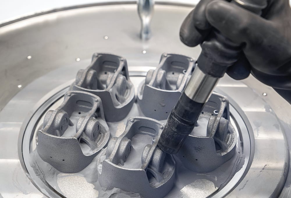 Porsche credits the layer-by-layer AM process for allowing the new piston architecture. The pistons for the 911 GT2 RS were manufactured from high-purity metal powders using the laser metal fusion (LMF) process. LMF uses a laser beam to heat and melt the powder surface to precisely correspond to the component’s contour. Initiated with partners Mahle and Trumpf, the project also uses measurement technology developed by optics specialist Zeiss to verify the integrity of the pistons.