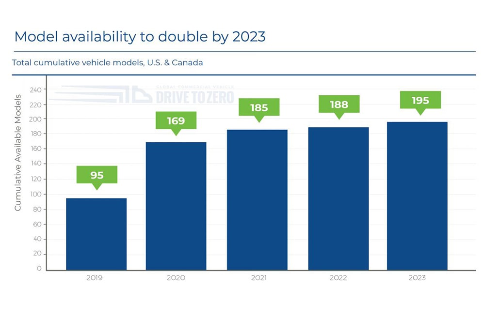 Schaeffer added that more technology improvements are coming to make future diesel engines “even nearer-to-zero emissions.” Manufacturers are working with regulators at CARB and the EPA on rulemaking that will establish further reductions in NOx emissions. Even so, at least 70 electric truck and bus models are currently on the market, according to CARB. And many manufacturers intend to launch market-ready ZECVs in the next several years. Recent analysis from CALSTART shows the number of zero-emission trucks, buses and off-road equipment in the U.S. and Canada doubling between the end of 2019 and 2023, when nearly 200 models will be available.