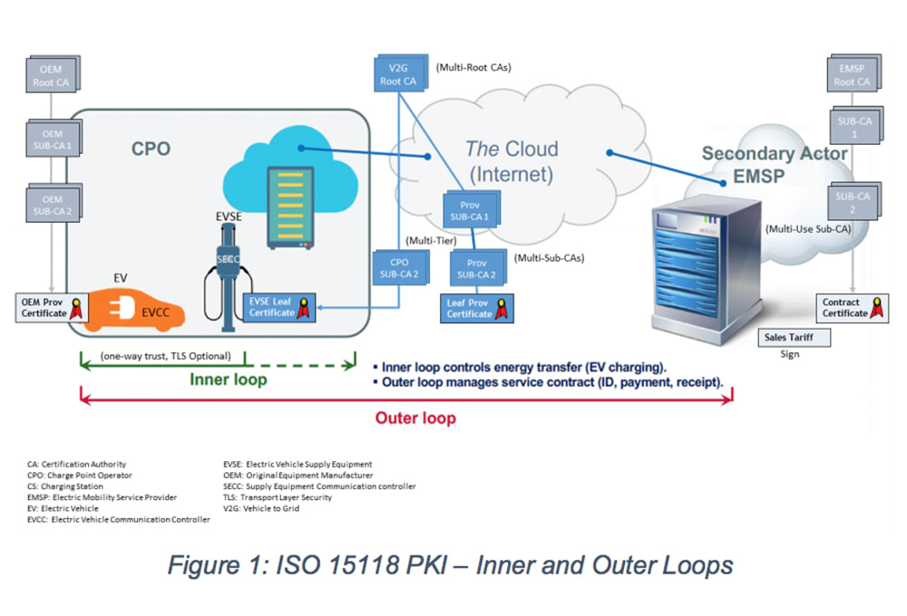 The dispute is about how security certificates are exchanged between entities, including automakers, chargepoint operators (CPOs) and so-called mobility operators (MOs). There are disagreements about the appropriate role for each business entity, which is mostly outside the scope of ISO 15118.