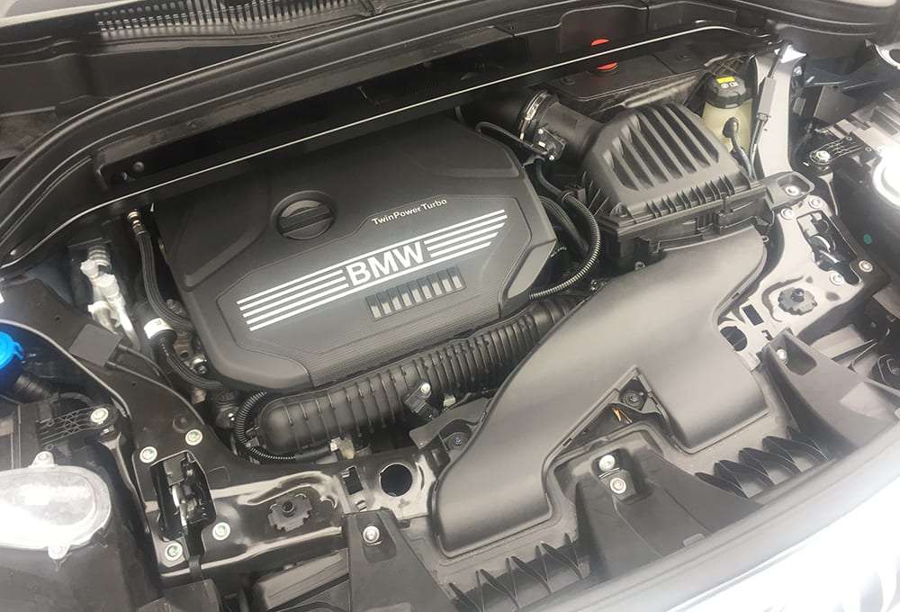 And there is the sideways-sitting 2.0-L turbocharged 4-cyl. (228 hp/258 lb-ft; 170kW/350 Nm on premium fuel) and an 8-speed automatic that’s a little more engine and transmission than you’ll find in, say, the nearly identically-sized and -packaged Honda HR-V. Considering how much throttle is needed to work up real acceleration in the X1, I consulted the spec sheet and found the likely explanation: the AWD X1 weighs 3,713 lb (1,684 kg).