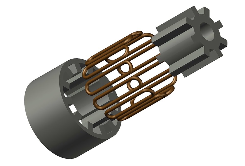 With an SRM, there is still a moving rotor, but it does not have magnets on it – it is made entirely of soft magnetic steel. “The stator creates an electromagnetic field but the torque is generated entirely by ‘reluctance’ – the desire of the rotor (of a ferromagnetic material) to align itself as best as possible with the magnetic field of the stator, in the same way that any steel object will try to align itself with a magnetic field – e.g., you can make a compass by floating a pin on water; the pin will then align itself with the Earth’s magnetic field,” Burke explained.
