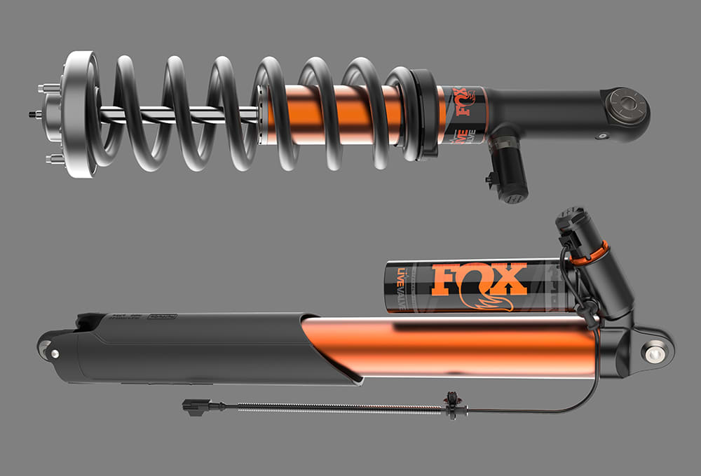 Managing the new suspension geometries are updated versions of Fox’s Live Valve active shocks, which have been modified to better resist heat buildup and react more quickly to terrain changes. Larger, 3.1-in (7.9-cm) diameter shock bodies feature an all-new shock fluid designed to decrease frictional losses, and new electronically controlled base valves have been upgraded to provide more than 1,000 lb (454 kg) of damping force per corner – double the current setup. Sensors can alter the Raptor’s suspension damping rates independently at each corner 500 times a second.