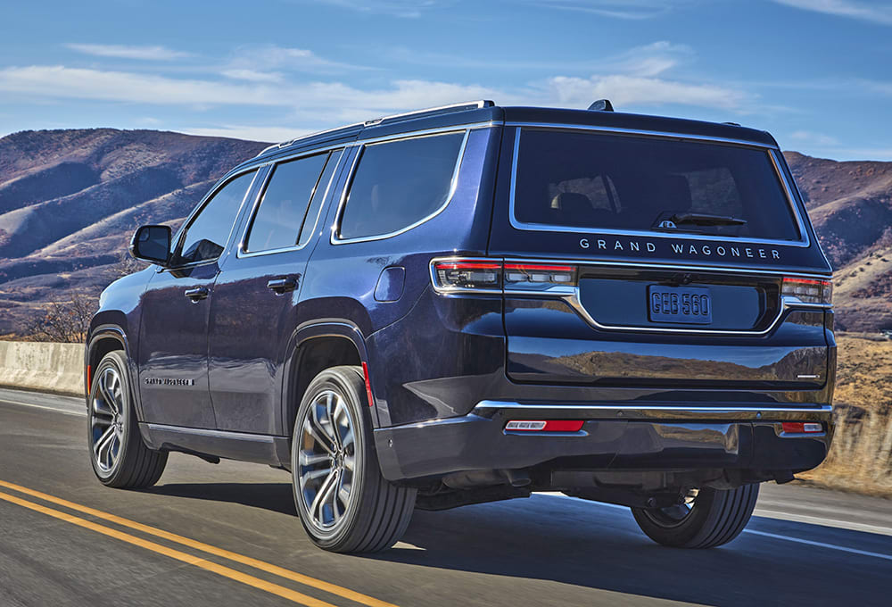 The Wagoneer features a fully independent suspension, and up front is a new double-wishbone setup with composite-upper and aluminum-lower control arms. Rear suspension is a coil-sprung multi-link. The standard Wagoneer suspension features coil-over shocks with rear load-leveling capability. Optional on Wagoneer and standard on Grand Wagoneer is a Quadra-Lift air-suspension system that includes electronically controlled semi-active dampers. “This next generation of Quadra-Lift features a dual reservoir,” Uhlmeyer detailed, “which allows the vehicle to go from normal ride height to the entry/egress ride height in just under seven seconds, which is about a 50% improvement over the previous system.”