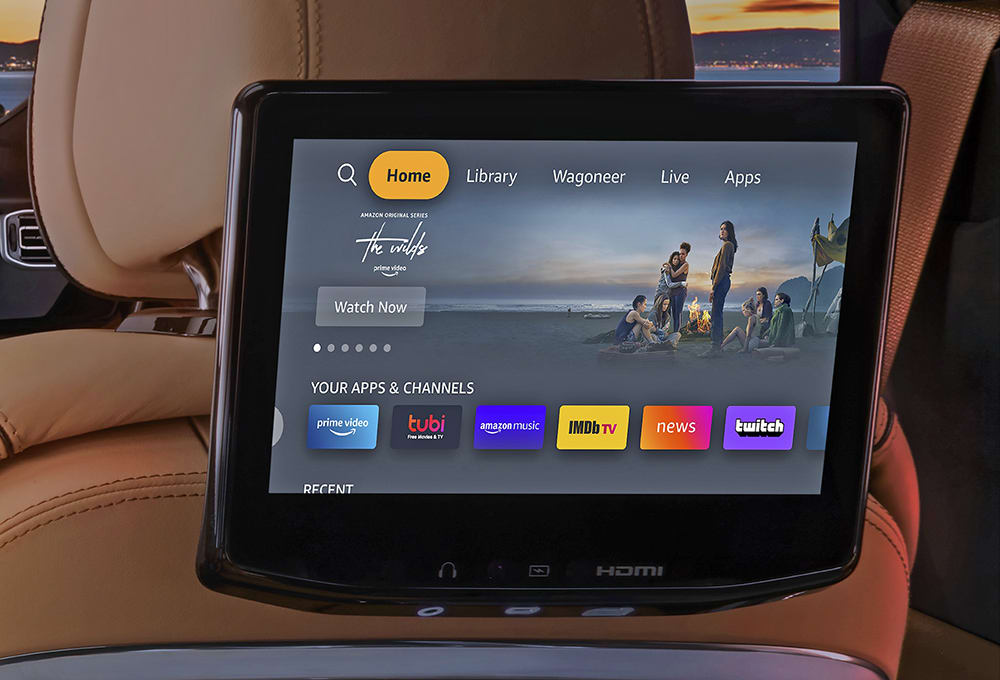 Jeep is collaborating with the classic American audio brand McIntosh for two industry-exclusive audio systems for Wagoneer. The MX950 setup features 19-speakers including a 10-inch subwoofer, powered by a 17-channel, 950-watt amplifier. Available only on the Grand Wagoneer, the MX1375 system employs 23 speakers (including a 12-inch sub), powered by a 24-channel, 1,375-watt amplifier and McIntosh’s patented 3D Adaptive Sound Processing. The audio system’s ornate controls replicate the traditional look and feel of McIntosh control knobs, and yes, McIntosh’s signature blue VU meters are available in the center display.