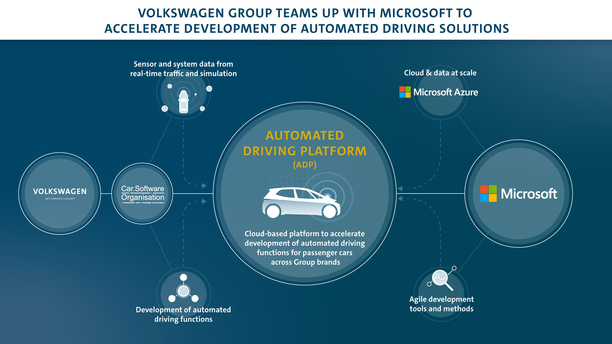 The goal of the CSO’s ADP is “the agile development of automated driving functions,” and will use Microsoft’s Azure cloud platform to simplify its development processes and bring automated driving solutions to the VW Group’s vehicles sooner “on a global scale.” Volkswagen and Microsoft have been strategic partners on the Volkswagen Automotive Cloud (VAC) since 2018. The VAC engineering team is based in Seattle, and the VAC will host all future digital services and mobility offerings.
