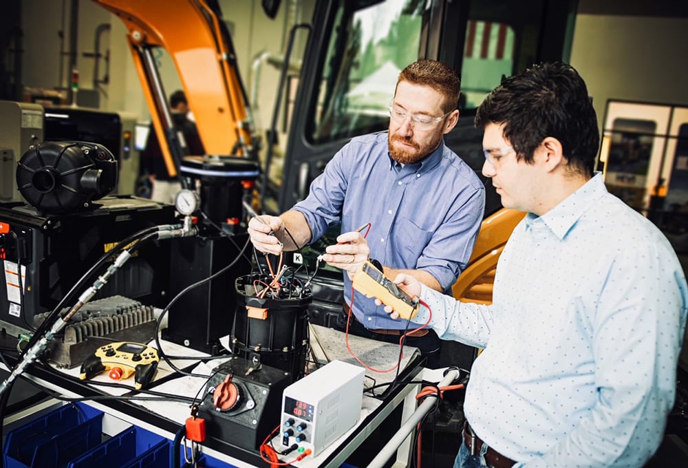 For its mini excavator demonstrator, Terzo Power Systems did not remove the existing diesel engine and hydraulics. The team added the battery-powered electrohydraulic system alongside the existing ICE system so they could demonstrate, in real time, a side-by-side comparison.