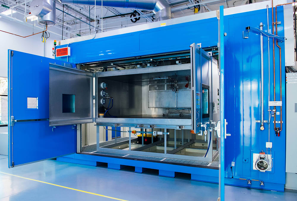 The testing and validation of ABS battery packs includes time in an environmental chamber. ABS has three, 10- x 8- x 4-ft (3- x 2.4- x 1.2-m) chambers with temperature capability from -40 to +85°C (-40 to +185°F). One chamber also has humidity capability, and the new cyclers added to one of the chambers means power capability to test up to a 1,200-volt system. “I’ve always said that it’s not the cells that keep a system safe; it’s the system that keeps the cells safe. So, the entire battery pack, the battery management system (BMS), the thermal system, and the mechanical structure are all there to protect the battery system,” Warner said.