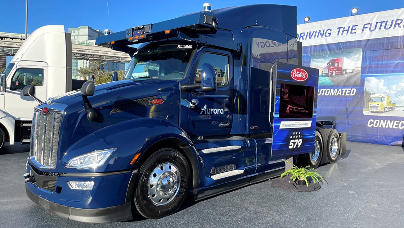 Peterbilt and Aurora have unveiled an autonomous-capable truck at CES 2022 in Las Vegas. The autonomous drive system, dubbed Aurora Driver, is making its commercial truck debut in a Peterbilt Model 579 truck. The system is capable of SAE Level 4 autonomous operation and was developed and integrated into the truck in partnership with Aurora.