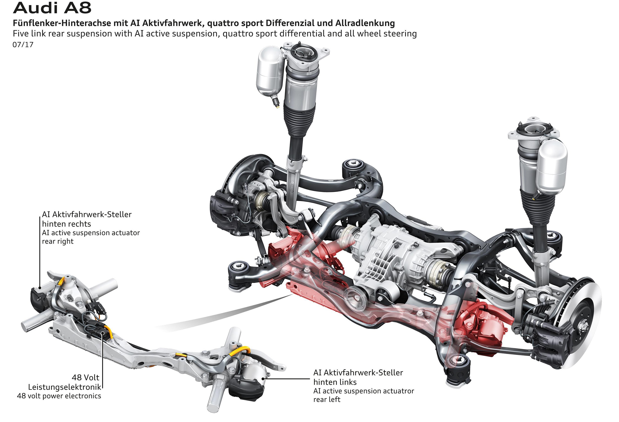 The Audi active steering is very innovative, integrating the steering rack, the dynamic steering column and the rear axle steering into one system. Together with the active suspension we believe this will deliver a lot of driving pleasure.