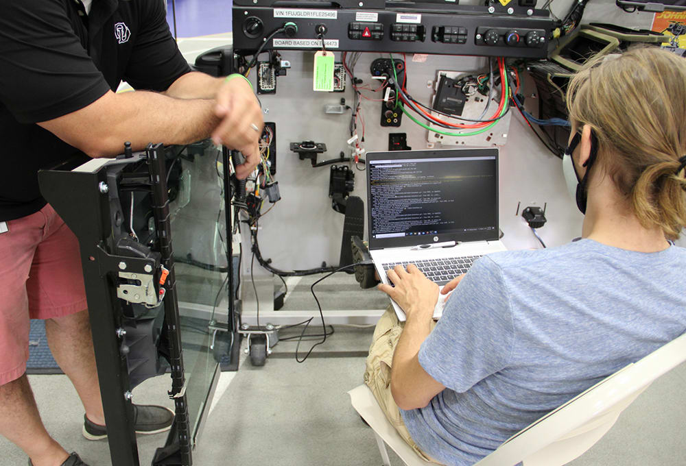 “Our products are at cybersecurity events. They’re being poked and prodded,” said Chris York, director of electronic system cybersecurity at Cummins, who provided an industry perspective on the Challenge and how it can promote continuous product improvement within a company. Among the components available for hands-on discovery are engine controllers, brake controllers and telematics units.