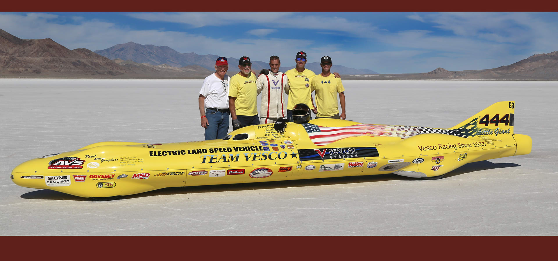 Team Vesco’s electric 444 affirms what Camille Jenatzy, the first person to break the 100 km/h (62 mph) barrier in 1899, proposed more than a century ago: that battery-electric drive is well-suited to automotive use. And that BEVs can be just as entertaining to drive as cars powered by internal combustion.