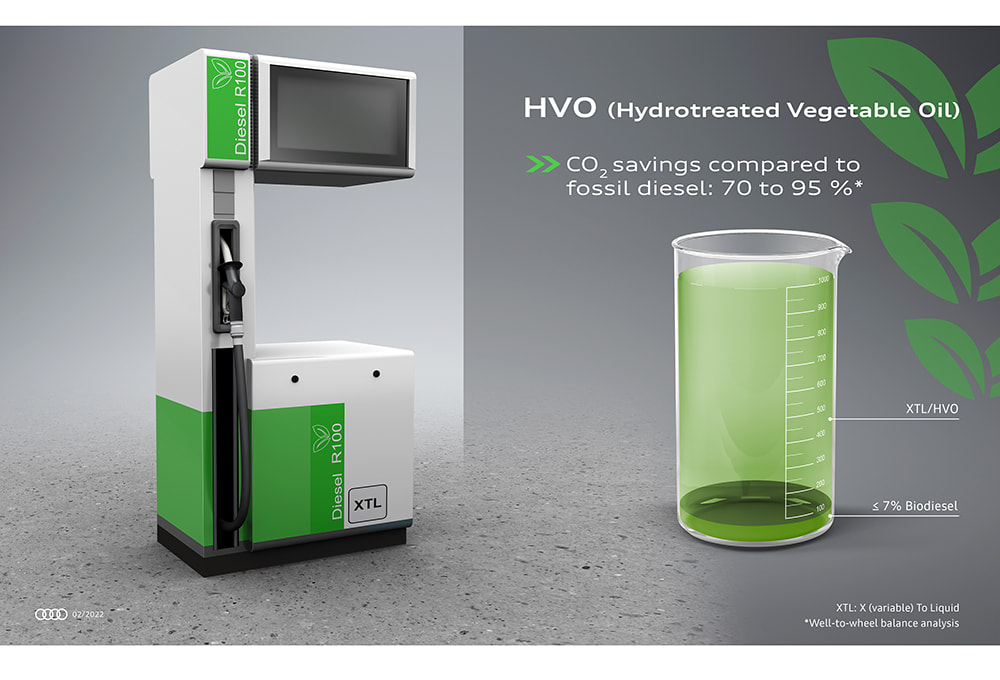 Another option to keep light-duty diesel in the conversation came in early 2022, when Audi (which pledged to end ICE engine production in 2033) announced production vehicles with V6 diesels would be capable of using new hydrotreated vegetable oil (HVO), a biomass-to-liquid (BTL) fuel. In addition to a 70-90% reduction in CO2 emissions, Audi said HVO has a 30% higher cetane rating than fossil-based diesel.