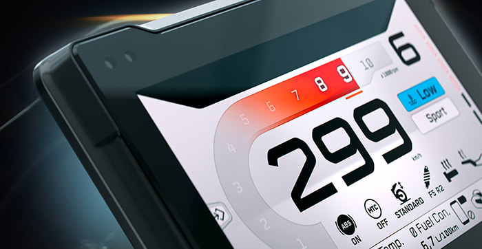 With a 7-inch version (above) appearing on the 2022 KTM 1290 Super Adventure S, Continental’s new MultiViu Sports display platform is a highly adaptable motorcycle instrument cluster based on a scalable development platform easily adapted to diverse applications. The automotive-grade display uses optical bonding technology to provide sharp images, and it will be offered in a number of sizes and aspect ratios in both portrait and landscape format. The TFT display features anti-glare and anti-reflection coatings, an 800x480-pixel resolution (for 5- and 7-inch sizes), a brightness value of 1,000 cd/m² and a contrast of 1,000:1. The Continental developer platform permits customized image content and simplified integration of external services such as weather info or music streaming, with future versions offering touchscreen functionality.