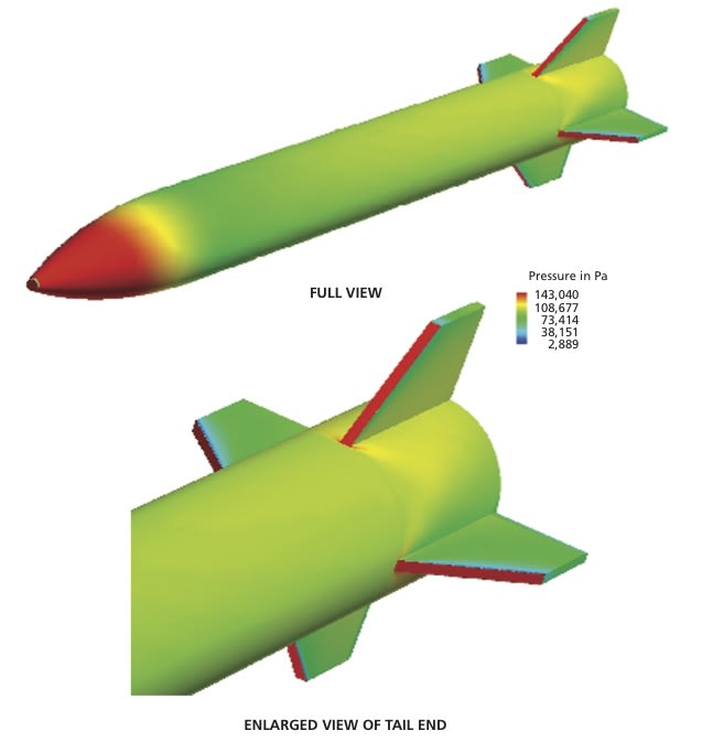 Turbulence was represented by a cubic k-ε mathematical model - a member of a class of models, commonly used in CFD, that are so named because they include the time-averaged kineticenergy density (k) associated with the local fluctuating (turbulent) component of flow and the time-averaged rate of dissipation (ε) of this turbulent-kinetic- energy density. A pressure/temperature- based inflow/outflow routine was utilized for the inflow boundary condition, while a characteristics-based inflow/outflow routine was used for the far-field boundary condition. A centroidal extrapolation routine was used for the outflow boundary, and an isothermal wall condition was used on the projectile surfaces. The computations were fully three-dimensional: that is, flow fields were not assumed to be symmetrical. All computations were performed under atmospheric conditions of free-stream pressure = 101,325 Pa and temperature = 298 K. Most of the cases were completed by use of 16 processors. The average central-processing- unit time needed to converge on the solution for each case was about 100 hours.