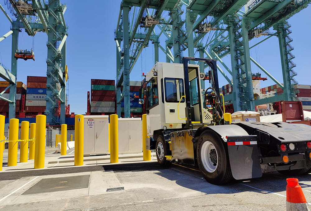 In early 2022, the first WAVE 125-kW wireless charging systems were installed at the Port of Los Angeles’ West Basin Container Terminal to power battery-electric yard tractors. “This California Energy Commission (CEC) grant-funded project calls for a total of 12 charging stations and 10 vehicles,” Masquelier noted. Another CEC grant provided for the installation of a 380-kW charger to support a Hyster battery-electric top loader.