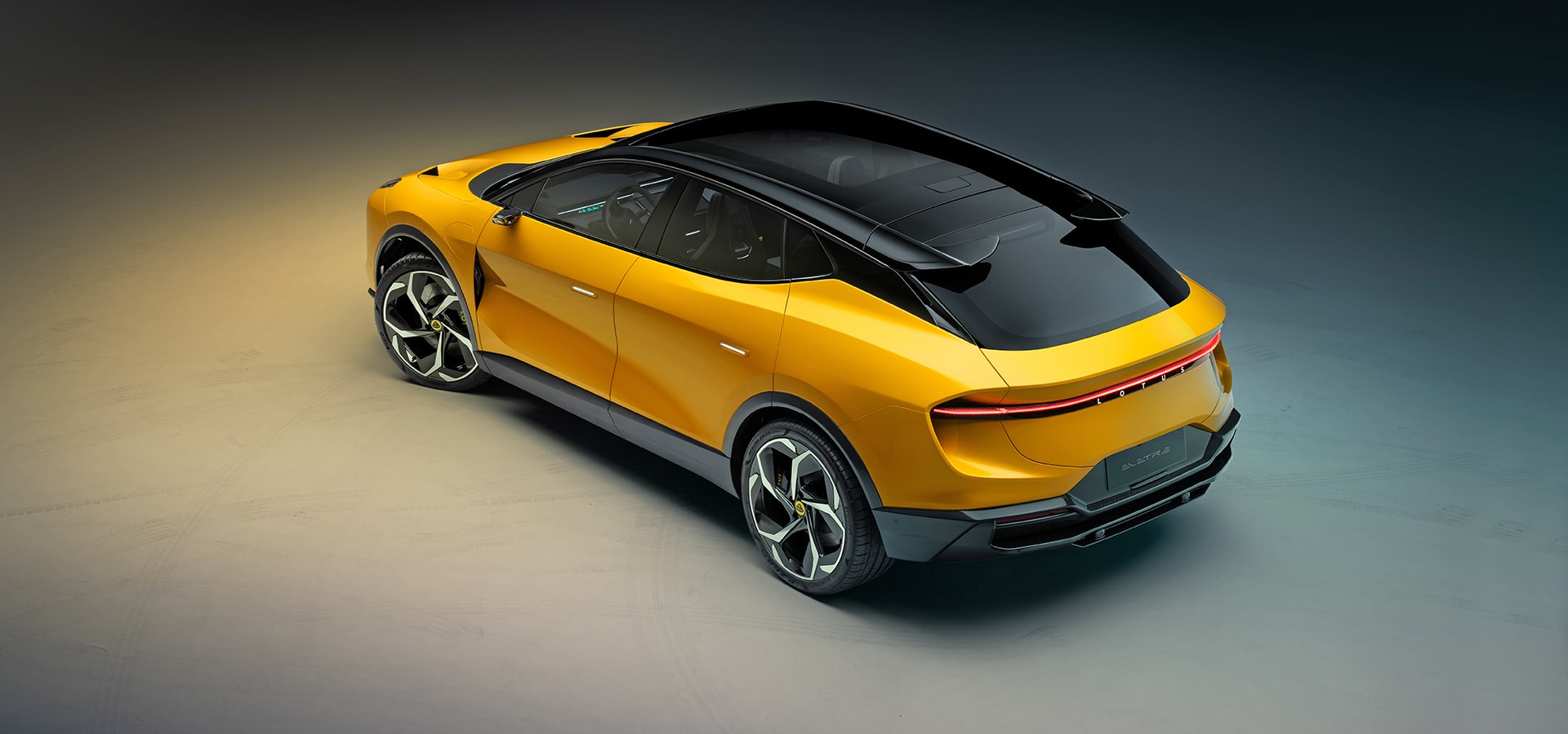 Eletre will be powered by two electric motors, one driving the front wheels and the other driving the rears. Each motor is integrated with a controller and reducer, designed to make the unit lighter and smaller. Power output will start from 600hp (447 kW), powered by a 100-plus kWh battery pack housed in the vehicle floor. Maximum range on the WLTP driving cycles is expected to be 373 miles (600 km). The car will be equipped with rear-wheel steering.