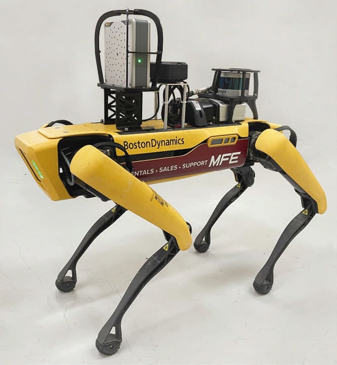 Spot is an agile mobile robot that navigates terrain with unprecedented mobility, allowing its operators to automate routine inspection tasks and data capture safely, accurately, and frequently. The robot, which resembles a large dog, can carry and power up to 14 kg of inspection equipment. It is easy to control the robot from afar using an intuitive tablet application and built-in stereo cameras, which makes it particularly suitable for carrying a multi-gas detector into potentially hazardous areas.