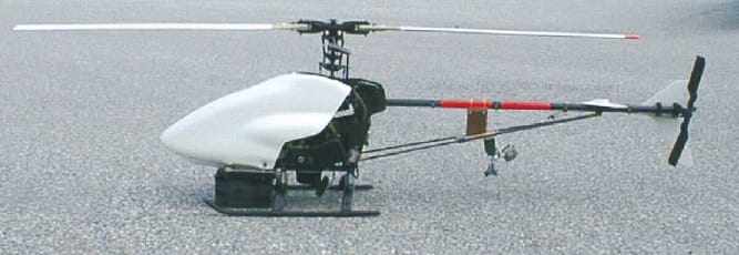 In a field test of this system, the modulating retroreflector, which had an aperture diameter of 0.5 cm, was mounted on the tail of the helicopter pointing downward (see Figure 2). The helicopter was flown at an altitude of 50 to 100 ft. (≈15 to ≈30 m) and a range 100 to 200 ft. (≈30 to ≈61 m) from the ground station. A pseudorandom bit stream at a rate of 400 Kb/s was transmitted from the helicopter to the ground station, using a modulator power of only 40 mW. However, it was estimated that the modulator and detector bandwidths and the strength of the return signal were sufficient to sustain a data rate of 3 Mb/s. It is planned to demonstrate even higher rates in future tests.
