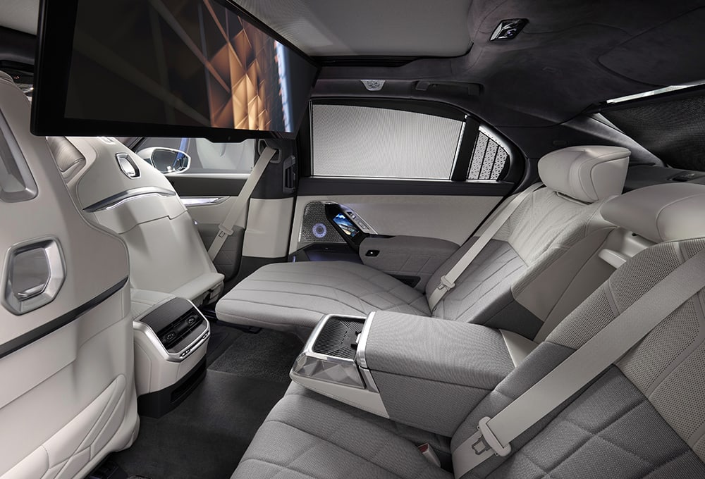 The i7 builds on the company’s development work with the i4, and particularly the iX crossover, from which it borrows the general configuration of the dashboard display. Other parallels with the iX include the design of the battery pack, using a taller layout and a more complex cooling strategy than the i4 sedan. Rated at 400 volts, the pack accepts DC fast charging at up to 200 kW, which is sufficient to load 100 miles (160 km) of range in 10 minutes, according to BMW.