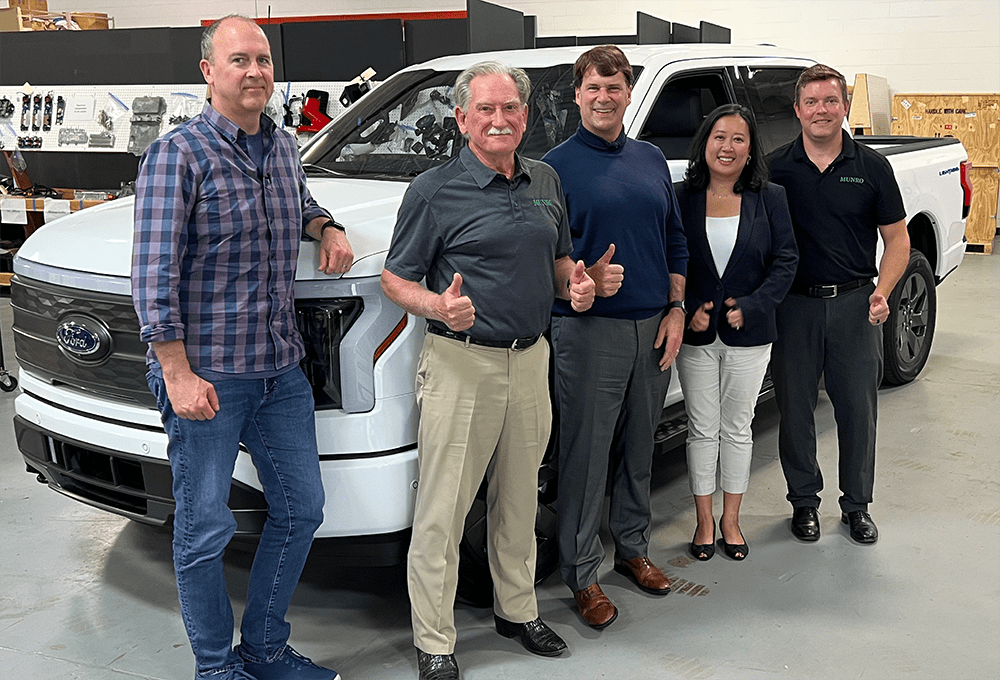 With the industry’s first full teardown of a Ford F-150 Lightning well underway, competitive-analysis specialists Munro & Associates recently purchased a second Lightning for long-term analysis. The new white electric pickup was delivered in person by an elite team: Ford CEO Jim Farley, EV chief Doug Field, and Lightning chief engineer Linda Zhang.