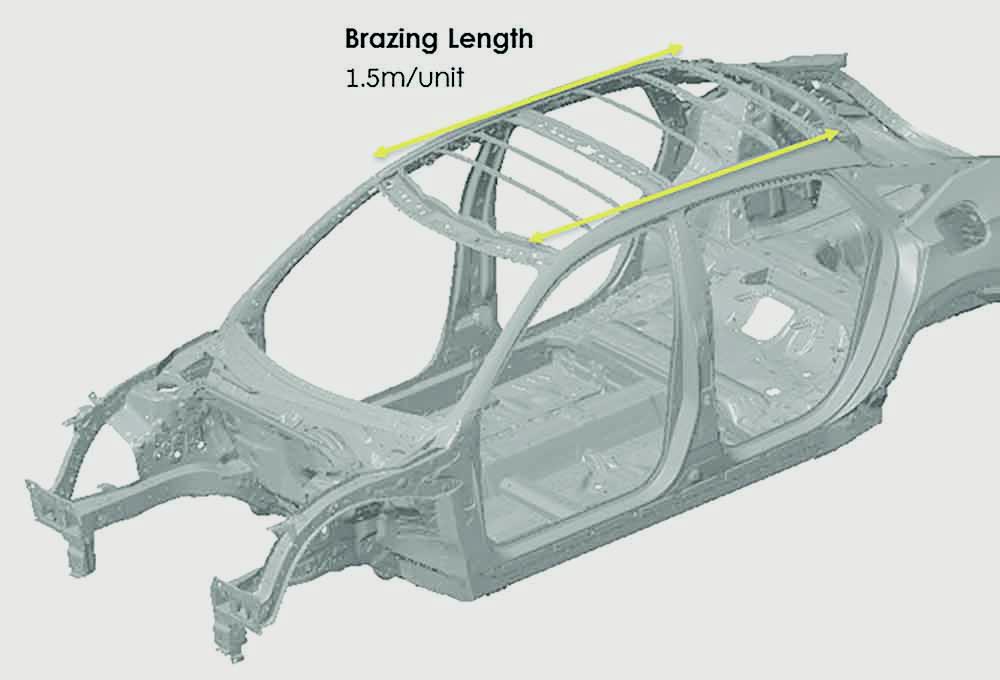 “The move to a laser-welded roof is a short-term cost but a long-term gain,” Fuel noted, “because it eliminates the ditch joint, the ‘mohican’ molding, the fastener equipment for the molding, and the install cost.” New Yaskawa laser-weld robots lay down 1.5 meters (about 5 feet) of copper bead per body side in 44.5 seconds. The robots are precisely guided by a high-speed, compact 3D laser-vision seam-tracking system supplied by Montreal-based Servo Robot.