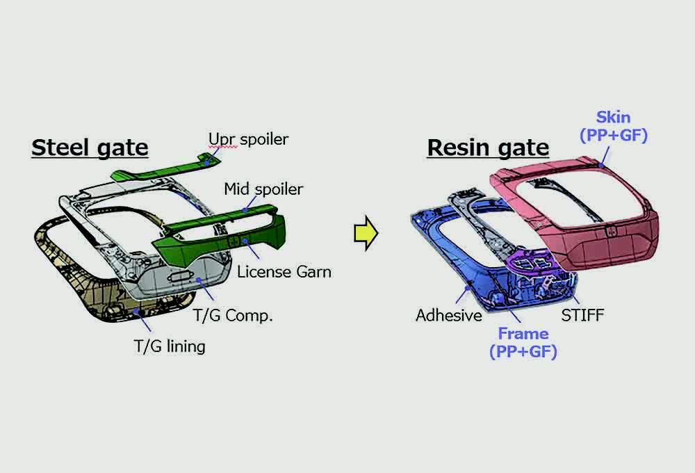The new Civic hatchback features an all-new rear liftgate construction that reduces mass by 20% compared with the previous model’s all-steel liftgate. It uses a steel inner stamping surrounded by durable impact-resistant, resin-based inner and outer skins. The new “hatch” also is perhaps the 2022 car’s most recognizable visual change. The liftgate is shipped as a complete assembly to the Greensburg line from a supplier.