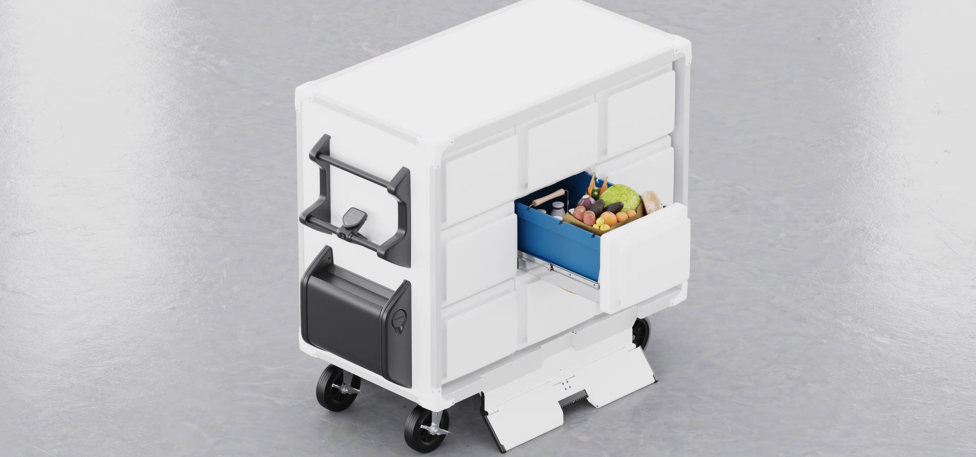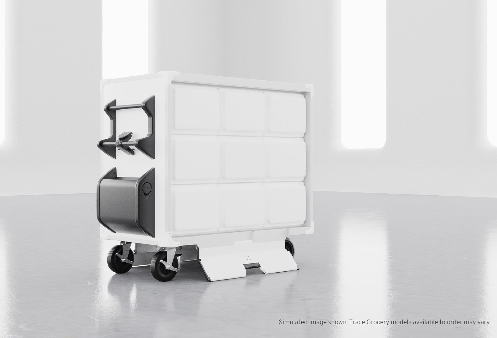 BrightDrop also said a key development point was to improve and streamline the several steps currently required for a grocer’s online order-fulfilment process. The Trace Grocery unit allows employees to select individual items and place them into the cart, then to station it curbsite. Meanwhile, Trace Grocery is “compatible with most grocers' existing online fulfillment apps,” so that customers can retrieve the order when convenient. Trace Grocery has propulsion assistance, BrightDrop said – a worthwhile feature given that the cart can hold up to 350 lb. (159 kg) of groceries. The unit also has motor technology to match an employee’s walking speed.
