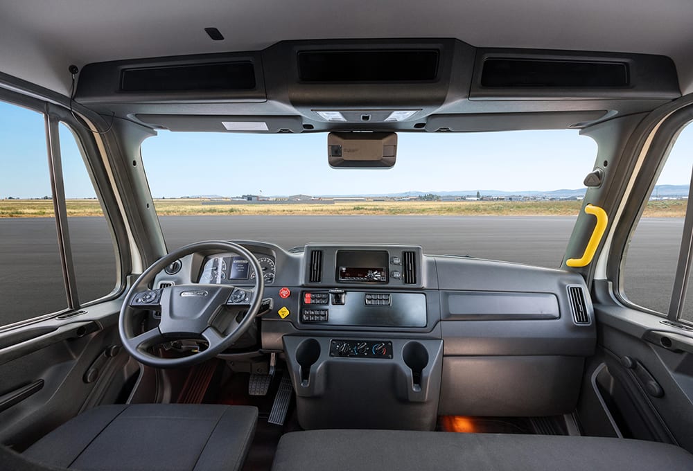 A marked move to “automotive style” interior features stem from customer feedback, according to Treinen, with the goal of helping to attract and maintain drivers. Standard LED lighting and upgraded seat materials that take ergonomic cues from the Cascadia are examples of this update. The seats also recline further and have greater travel by a couple additional inches.