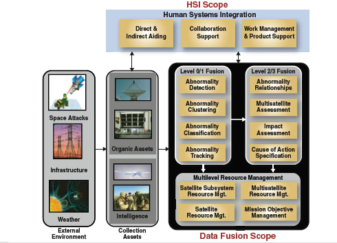 Intelligent use of all data sources can not only help in detecting events as they happen, but can potentially uncover an adversary's probable intent. The analyst can then apply resource management algorithms that will recommend prioritized courses of action. By autonomously detecting abnormalities, assessing the impact, and recommending a response, the data fusion tool suite will increase an analyst's situational awareness and response capability in overseeing an increasing number of space assets. Figure 1 illustrates AFRL's data fusion architecture.