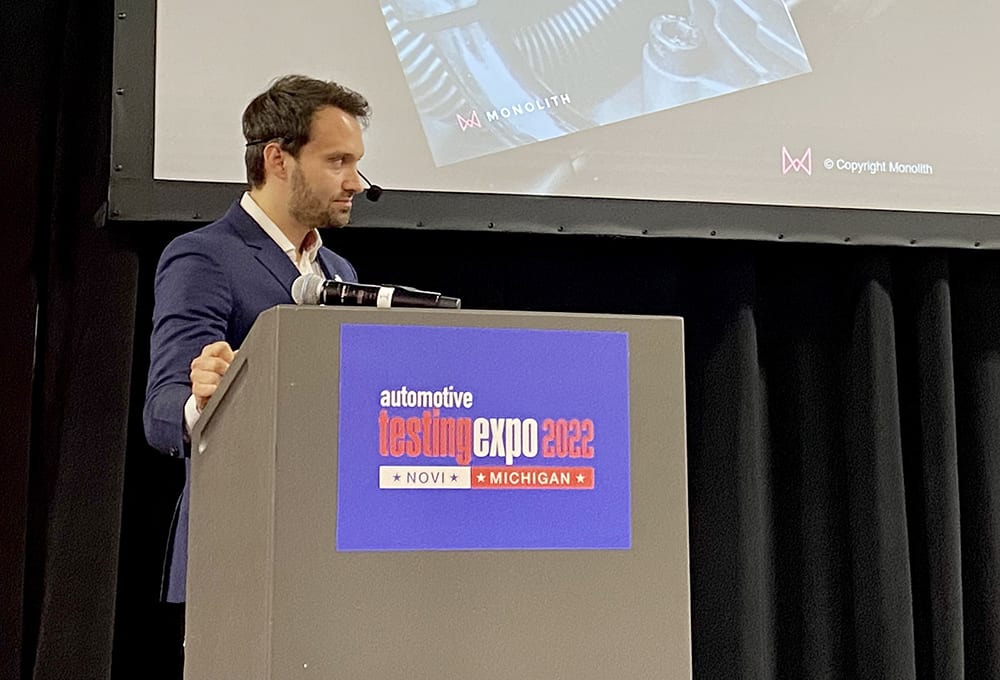 Monolith’s founder and CEO, Richard Ahlfeld, joined Monolith’s marketing team at the 2022 Automotive Testing Expo in Novi, Mich., to show the potential of the company’s software to let vehicle engineers “test less and learn more,” using the software tool, which was built so it doesn’t require a specialist in data science to use.