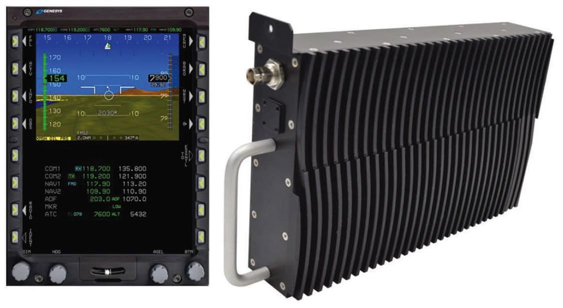 The GDR software-defined radios combine VHF communications from 118 to 156 MHz, UHF from 225 to 400 MHz, VOR, LOC, GS, and marker beacon in a form factor that weighs less than four pounds.