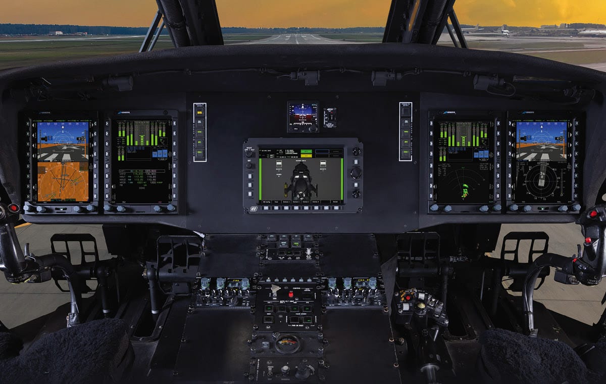 The displays feature a variety of primary flight display (PFD) modes, including synthetic vision with head-up display (HUD) symbology in accordance with SAE ARP-4102/7 and MIL-STD-1787. Additionally, the electronic attitude and direction indicator and basic six pack configuration for primary training are the other core features of the displays. The PFD also provides functions such as flight path marker, Mach number, G-meter with latching tattletale, dual cue flight directors, V-speeds, radio frequencies and hover vector for helicopters.