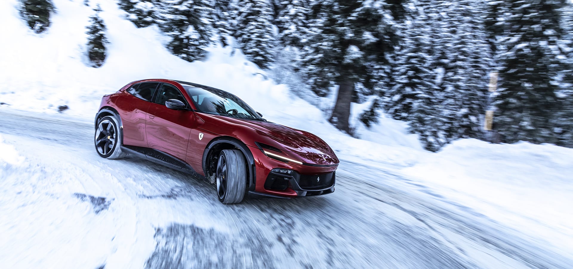 The Ferrari Purosangue scurries up the snowbound pitches of Italy’s Monte Bondone, the Alpine peak whose auto-hillclimb exploits date to 1925. Ferrari’s first “SUV” — really, more a genre-blurring crossover — slices through Bondone’s 38 devilish corners, gaining nearly 4,900 ft (1,494 m) of elevation over an 11.2-mile (18-km) workout. Its 715-hp (533-kW) V12 sings like the tragically-fated opera hero it is, to an 8,250-rpm height that’s as lofty as the surrounding Dolomites.