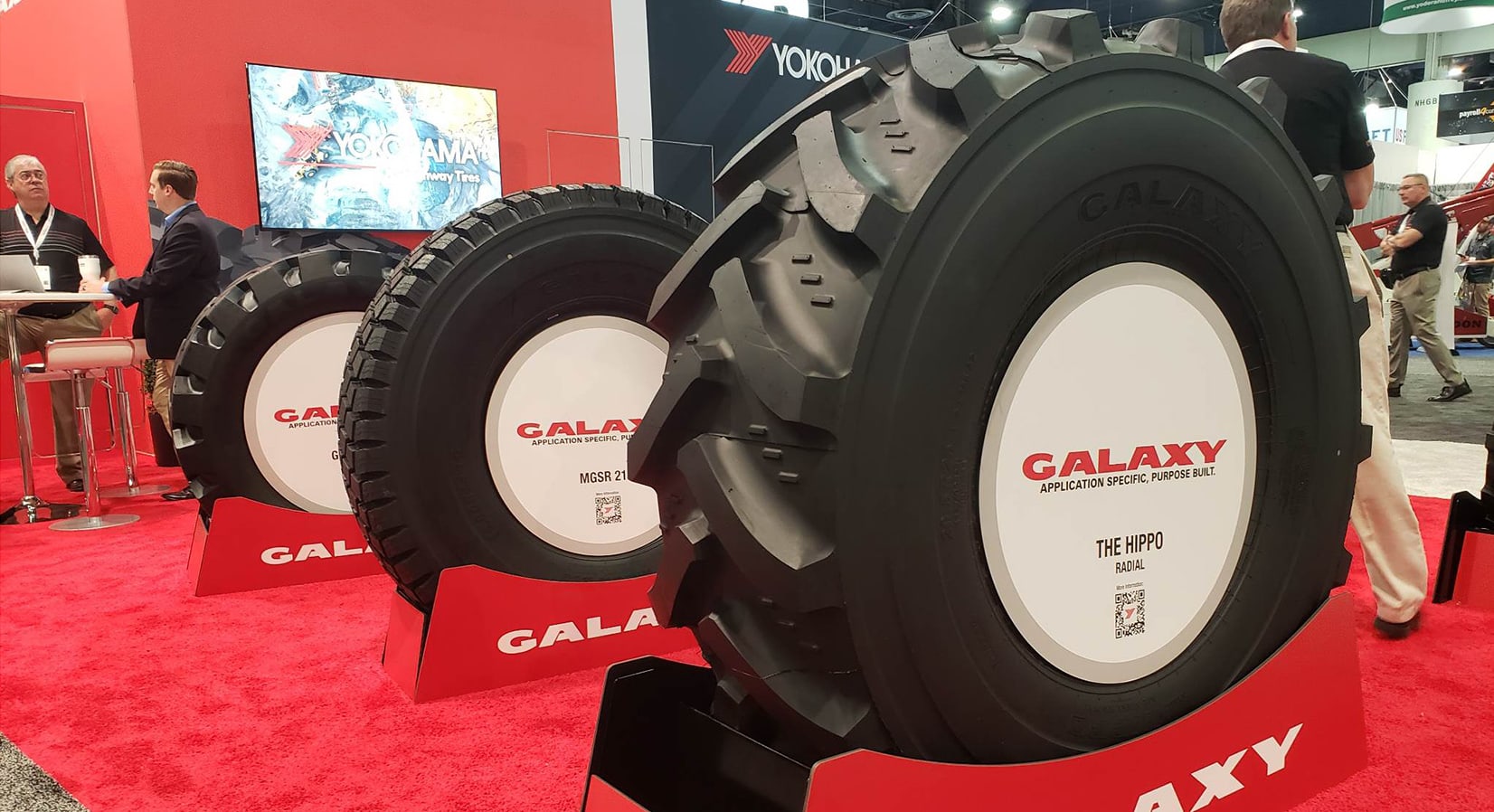 Yokohama launched the new Galaxy Hippo all-steel radial high-traction loader tire plus new sizes for the RT41 L-4 Radial and the RL52 loader radial at CONEXPO 2023.