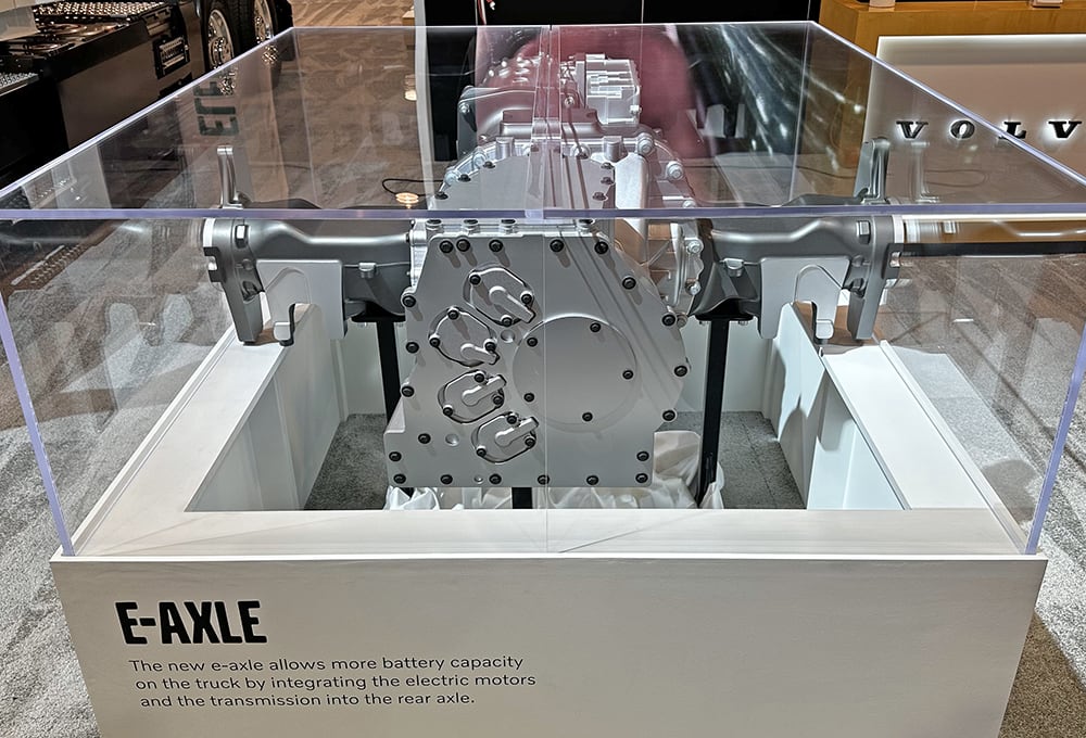 The two trucks Volvo displayed at its booth at the ACT Expo – one electric, one autonomous – were there to represent the spectrum what Volvo offers, but they’ve both been seen before. Same with the hydrogen fuel-cell stack and e-axle on display.