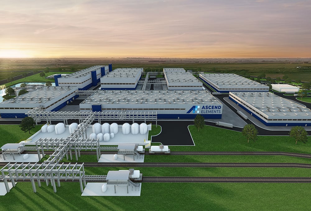 Ascend Elements uses a novel technique for processing materials to become battery-ready cathode material. “Our patented Hydro-to-Cathode direct precursor synthesis process eliminates energy-intensive intermediate steps and produces new cathode precursor (pCAM) without metals extraction or separation,” Ascend Elements CEO Mike O’Kronley said.