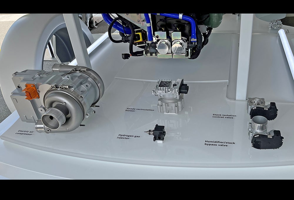 Bosch’s plant in Bamberg, Germany, is supplying the Feuerbach factory with the fuel-cell stacks, and system components such as the electric air compressor and the recirculation blower come from its Homburg, Germany, site. Feuerbach then assembles and tests the complete system.