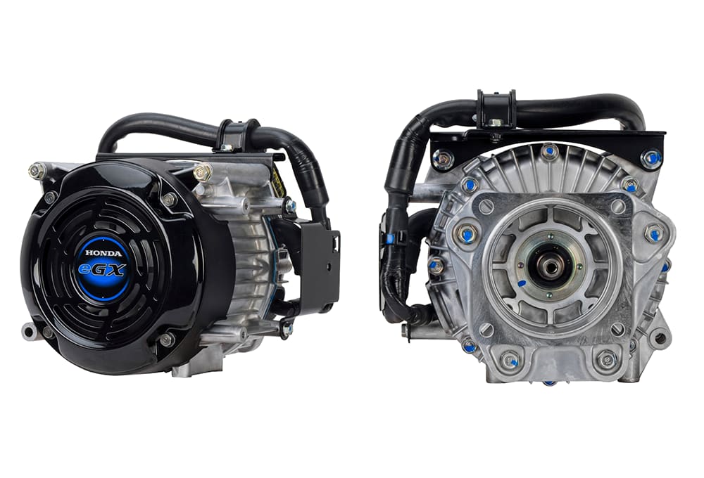 Propulsion is provided by a three-phase brushless DC motor which can propel the kart to a claimed top speed of 45 mph. Honda states that it leveraged its experience in generator production for the design of the insulation, cooling and winding technology, which reportedly minimizes total power loss. Honda also states that the eGX’s motor was designed to meet the performance of the GX100 and GX120 engines, which makes the electrified powertrain a suitable replacement for the 100-120cc engines.