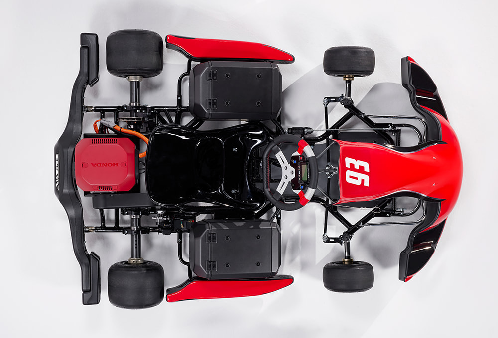 Honda set up a small course on the skid pad at M1 Concourse so we could sample what the eGX was like at speed. While a conventional ICE-powered kart was not on hand as a point of comparison, the eGX felt lively despite its 230 lb. (104 kg) curb weight (gas karts usually weigh in at just under 200 lbs./90 kg). The batteries are mounted flanking the rider on the side pods, but also within the centerline of the chassis and in line the driver’s seating position. As such, the overall weight distribution and cross-weight balance of the kart is essentially unaffected.