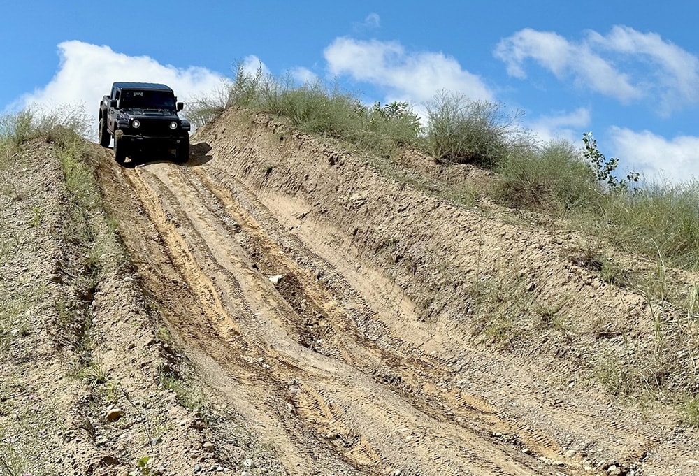 An ICE-powered Gladiator was available for comparison. And while it had few problems with the same terrain, there certainly was – as one might expect, more noise and start/stop adventure in traversing the steeper and more challenging obstacles.