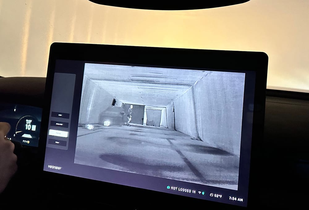 Out in the parking lot, Magna demonstrated a host of safety features. One, its thermal imaging technology accounts for 98% of the current thermal-imaging market. A demonstration showed the system able to identify pedestrians in virtual pitch black combined with simulated fog. A pedestrian suddenly popping up in front of the vehicle instantly triggered emergency braking.